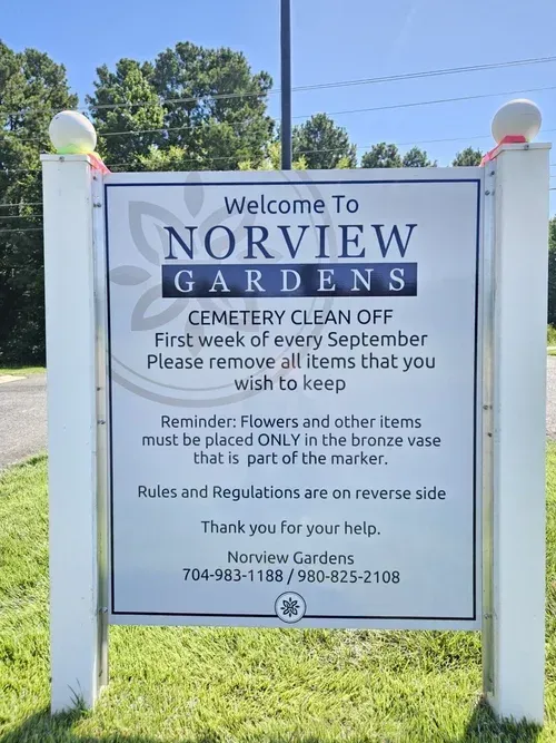 The Hartsell family (Hartsell Funeral Homes) owns and maintains Norview Gardens. Norview Gardens offers all your memorial needs, from burial plots to memorial markers and vaults for caskets and urns. Our services include memorial marker ordering and installation, cleaning, and refinishing. Please contact us for pricing.